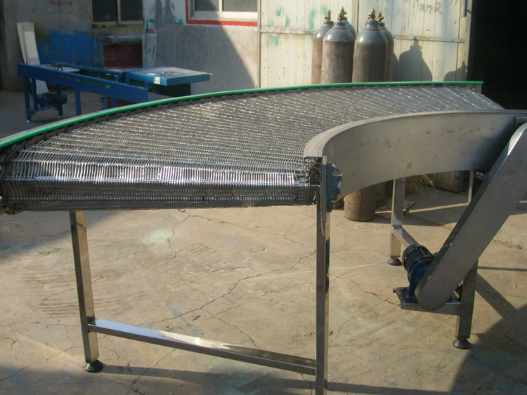 對于大功率長距離轉(zhuǎn)彎網(wǎng)帶輸送機(jī)而言,動態(tài)變化非常明顯,很難精確控制,一般需要采用多點(diǎn)驅(qū)動的方式,即在輸送帶的多部位設(shè)置驅(qū)動電機(jī),共同驅(qū)動轉(zhuǎn)彎網(wǎng)帶輸送機(jī)。因網(wǎng)帶是粘性材料,網(wǎng)帶具有彈性,網(wǎng)帶張力在傳送過程當(dāng)中具有滯后性,如果使用單點(diǎn)驅(qū)動,驅(qū)動點(diǎn)附近張力非常大,而網(wǎng)帶的尾部卻不能及時(shí)獲得驅(qū)動力,即出現(xiàn)前部網(wǎng)帶張力過大,尾部卻沒有受力,嚴(yán)重時(shí)會出現(xiàn)斷帶現(xiàn)象。所以對于大軸功率、長距離轉(zhuǎn)彎網(wǎng)帶輸送機(jī)不能使用單點(diǎn)驅(qū)動,只能采用多點(diǎn)驅(qū)動轉(zhuǎn)彎網(wǎng)帶輸送機(jī)的方式,這為大功率長距離轉(zhuǎn)彎網(wǎng)帶輸送機(jī)的發(fā)展奠定基礎(chǔ)。